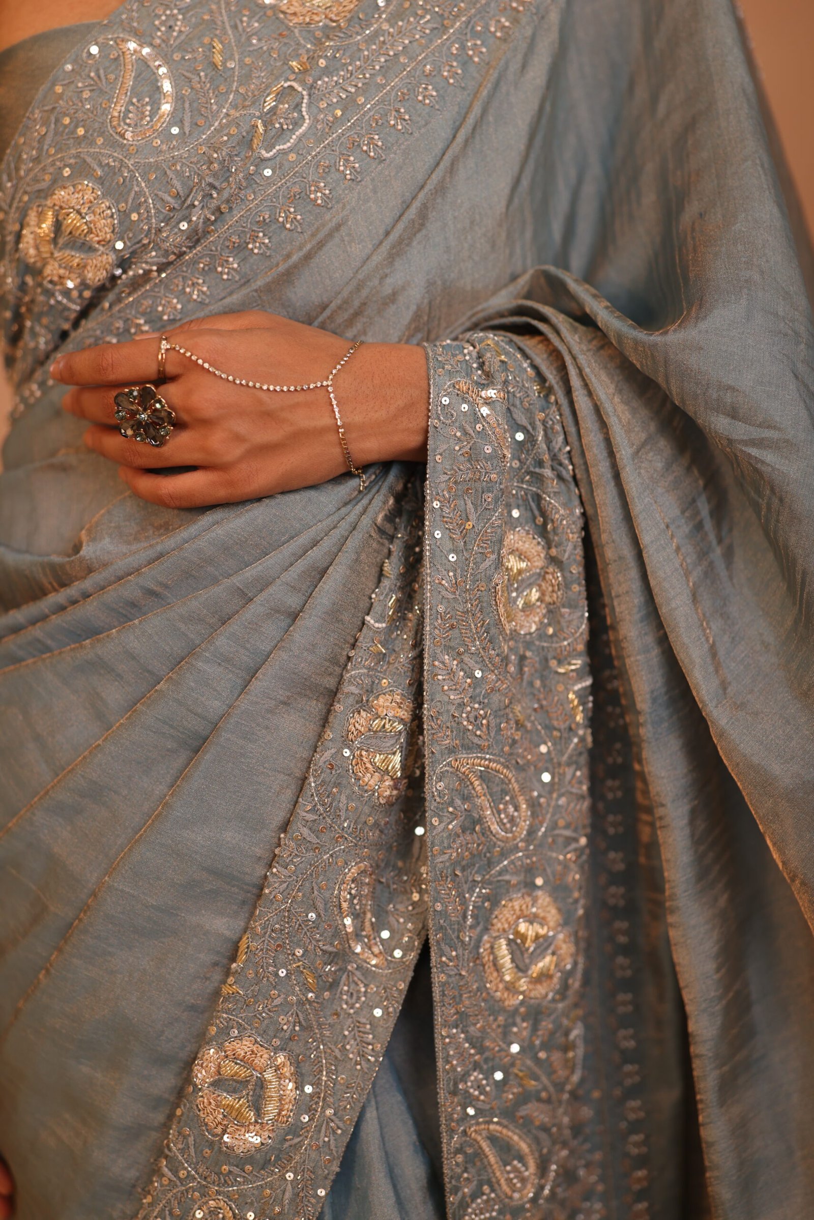 Designed for effortless draping, the lightweight georgette fabric offers both comfort and grace, making it an ideal choice for weddings, festive occasions, and evening gatherings.